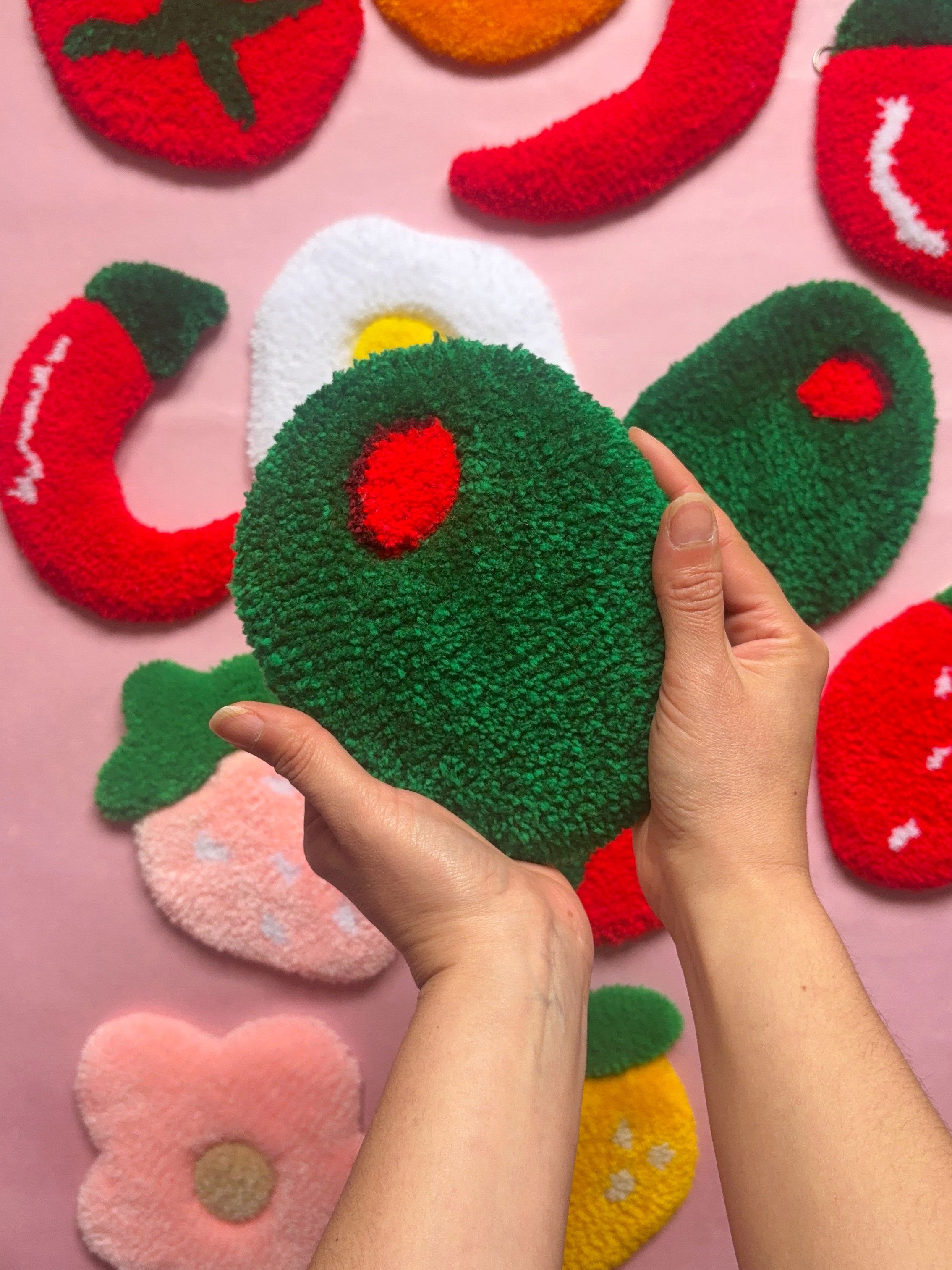 Posavasos realizado artesanalmente con la técnica Tufting.