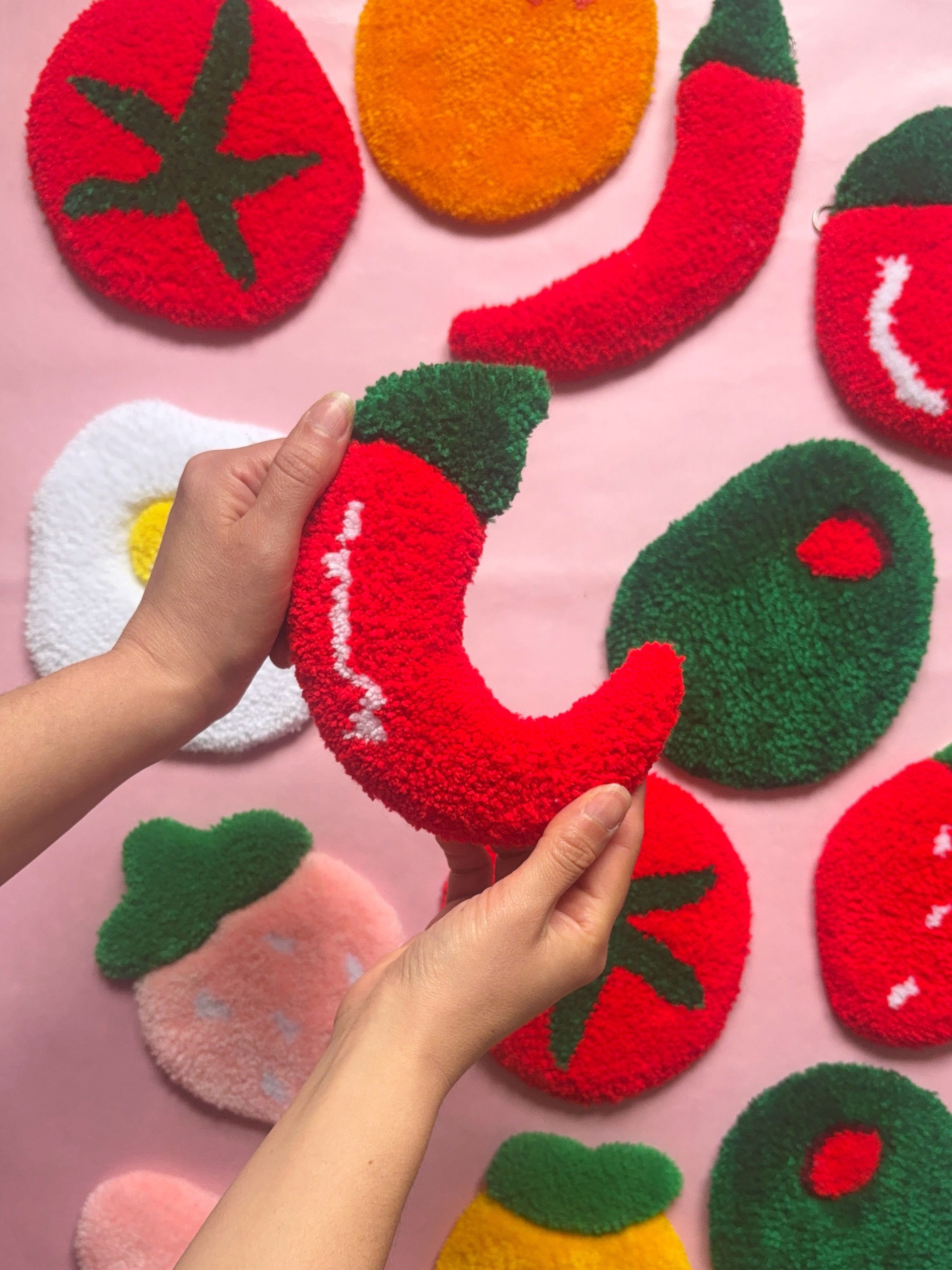 Posavasos realizado artesanalmente con la técnica Tufting.