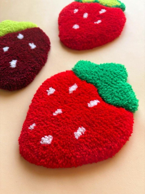 Posavasos realizado artesanalmente con la técnica Tufting.