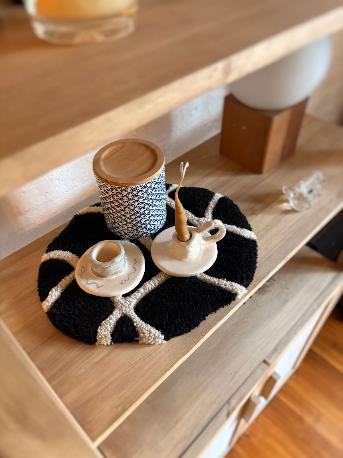 Mini alfombra realizada artesanalmente con la técnica Tufting.